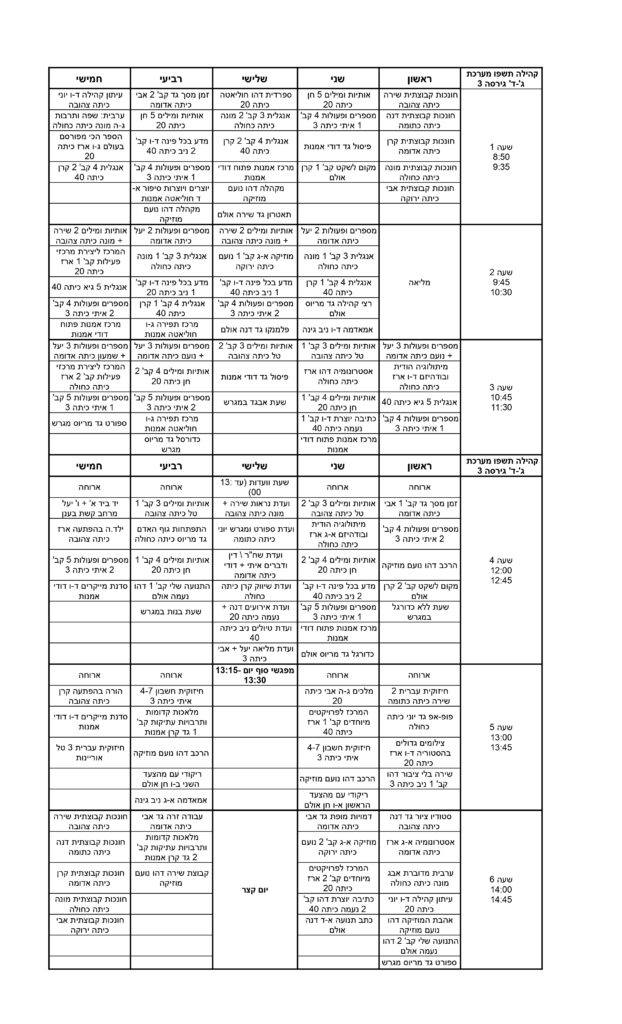 בין הנושאים הנלמדים: חשבון, עברית, דמויות מופת, עיתון קהילה, לימודי מחשב, שיר בכיף, חוקרים חיים, נולדו לבמה, בניית משחקים, אהבת המוזיקה ועוד…